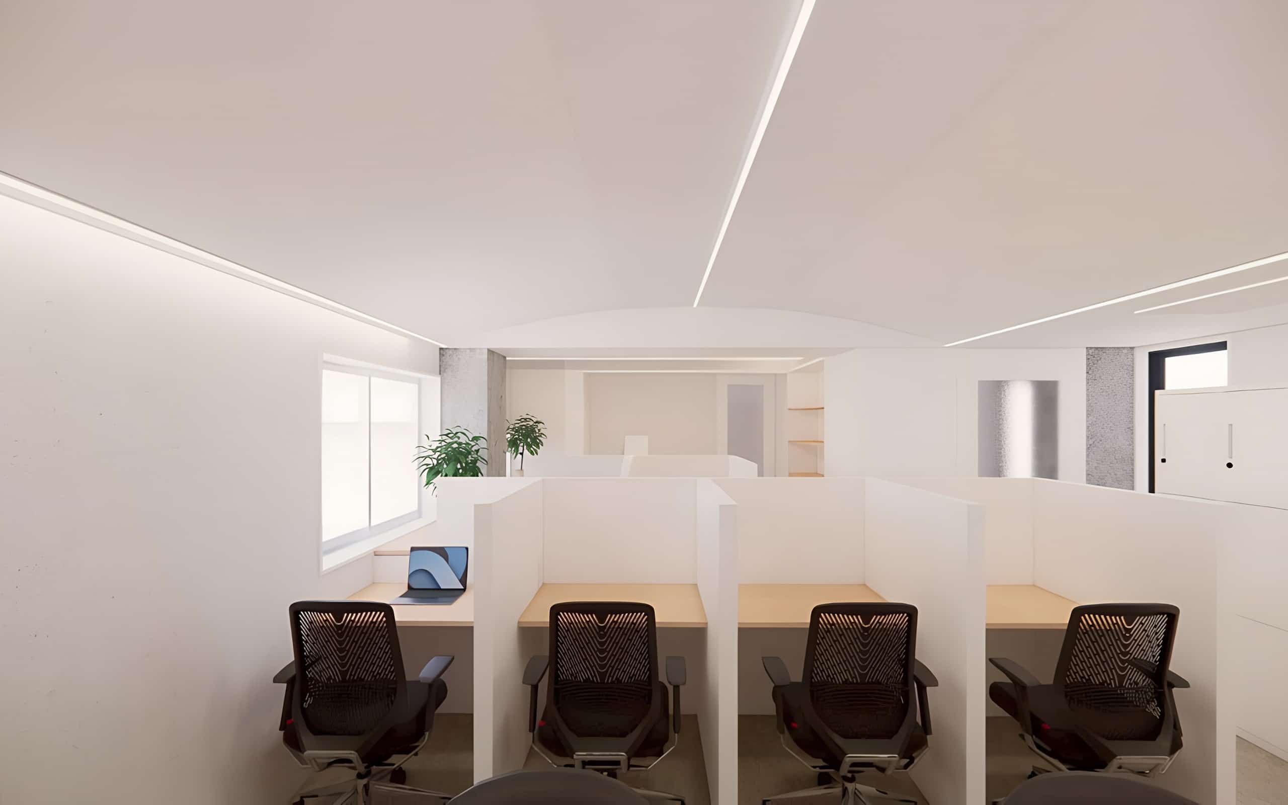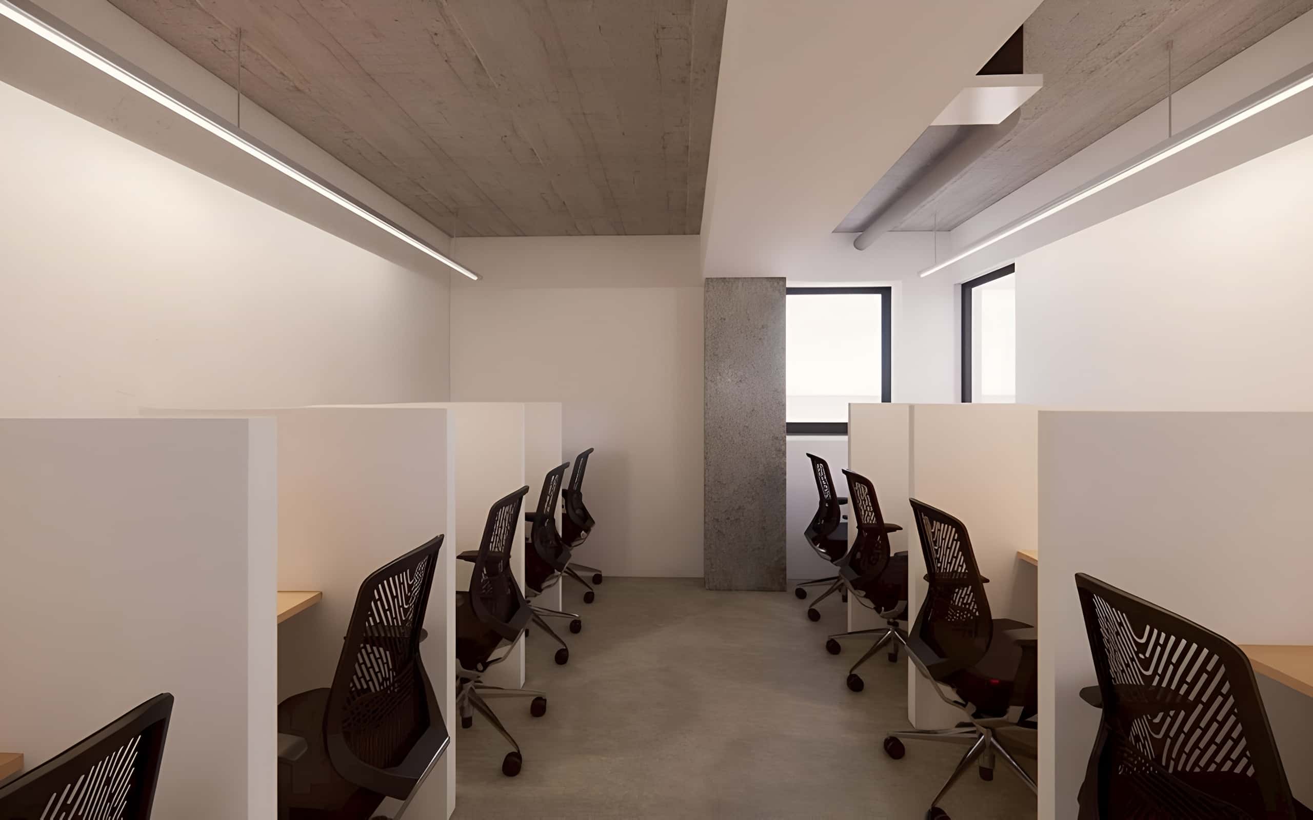 一人用の仕切り席で、作業に没頭できる環境設計。